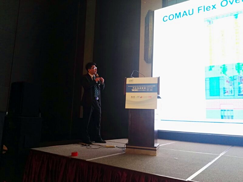 RichardWeston先生發(fā)表演講(圖) 柯馬已在中國已經(jīng)裝配了超過100條汽車白車身線。RichardWeston先生指出ComauFlex是重構(gòu)制造工廠的理念,柯馬新的運營哲學(xué)以模塊化的方式優(yōu)化了制造工作區(qū)域的布局,可提高生產(chǎn)效率,降低運營成本和簡化新車型的引入。 柯馬中國焊裝機(jī)械工程部經(jīng)理羅先兵先生也發(fā)表了關(guān)于柯馬創(chuàng)新技術(shù)的演講,羅先生首先向大家詳細(xì)闡述了Comauflex的概念和典型應(yīng)用,隨后向大家介紹了柯馬獨有的3DScanning(工廠三維掃描),LHYTE復(fù)合激光源,以及虛擬調(diào)試等先進(jìn)技術(shù)。引起了與會嘉賓的強(qiáng)烈興趣。